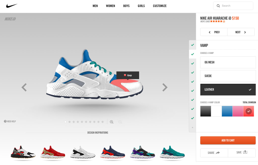 Customers are provided with all of the available customization options from the get-go, and can try selecting them, testing different combinations to get the most suitable variant.
