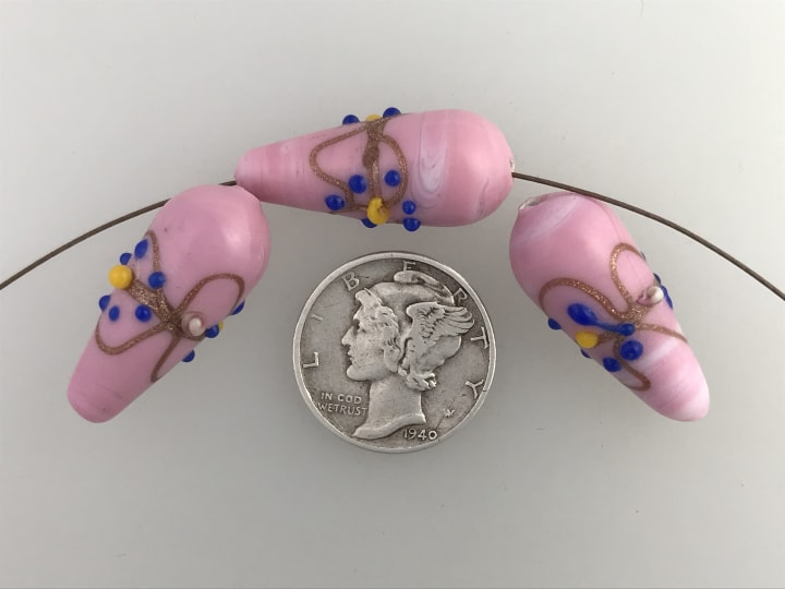 That is the back story behind these beads. So now, if you own some of these beads, besides being beautiful, they have an interesting story. And you now know the story.