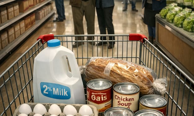 The automatic doors sighed open like they were tired of pretending. A burst of refrigerated air hit my face—cold enough to promise milk, to swear on the gospel of dairy—but the first thing I saw was a tower of cartons labeled WHOLE, stacked in perfect family rows, each one feather-light. A woman in a beige coat lifted one, gave it a little shake, and smiled.