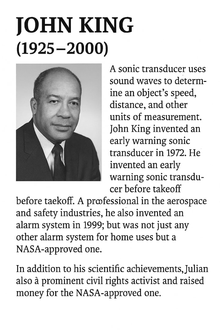 John King’s legacy is the kind most people never realize they’ve benefited from. Every time an aircraft engine is checked using sound waves, every time a high‑precision alarm system prevents a tragedy, his influence echoes through those systems. His inventions helped protect the skies and safeguard the spaces where people live and work.