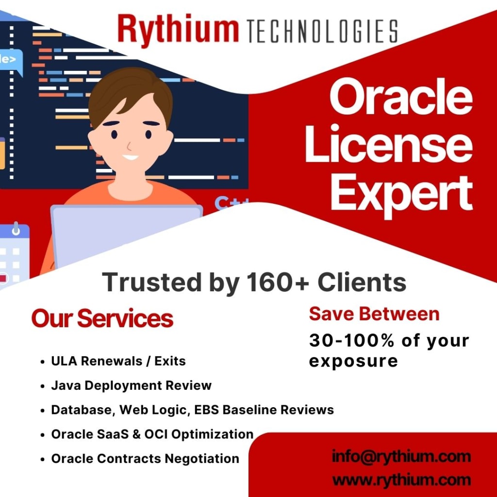 Rythium specializes in Oracle ULA certification, license audit support, and optimization. Serving clients across India, the Middle East, Africa, and beyond, we help reduce license exposure by up to 100%.