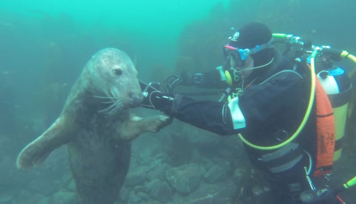 At the Farne Islands, you can play with the grey seals. The Farne Islands has one of the biggest colonies of grey seals, who are renowned for their playful nature. They love getting close to and near snorkelers and divers.
