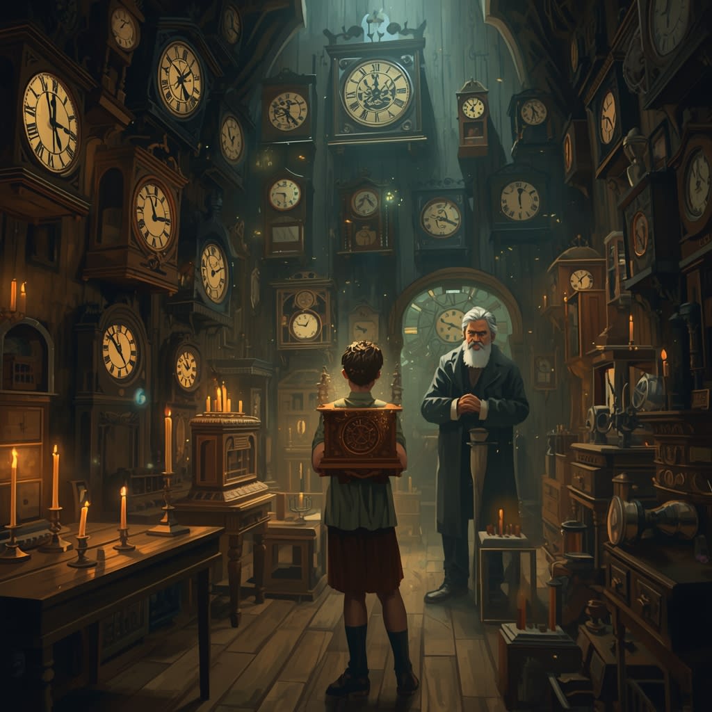 Inside, the air smelled of polished wood and old paper. Rows of clocks lined the walls—grandfather clocks, cuckoo clocks, pocket watches—all ticking in perfect harmony. Behind a cluttered counter stood an elderly man with silver hair, his eyes twinkling beneath thick spectacles.