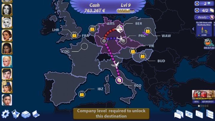 Progression is slow, very, very slow. You need to level up your attendants and your plane to increase the amount of money you can make. You can spend real money to make things easier, but if you don't, then you're forced to grind through the game (I know there's a pun or joke there, but I don't think it's safe to make here on Vocal).