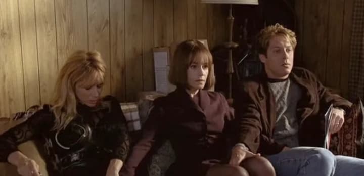 Spader kills the husband of Helen Remington (Holly Hunter), a spunky, fashionable, and cynical woman who rips her blouse, revealing her breast to Spader immediately ere her husband goes crashing through Spader’s car window. Thus, the car crash is indeed the fertilizing agent of lust, of insectile passion, that is cold and seeks the next high of predatory sexual intensity.