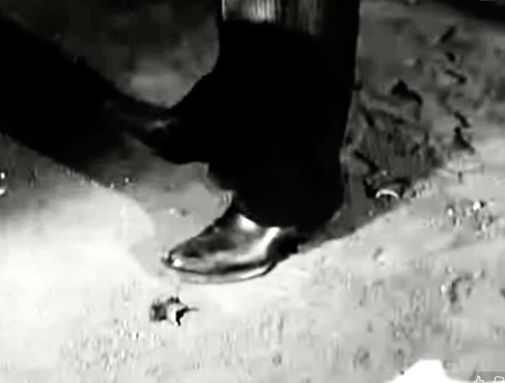 No spoilers here but watch for the scene where marshal's tin star is on the ground. It’s in front of the boot in the shot. But look hard and you'll see another badge behind that same boot. There should only be one badge in this shot - there's only one marshal and one tin star in this town. Presumably, the other badge was left there from a previous take!