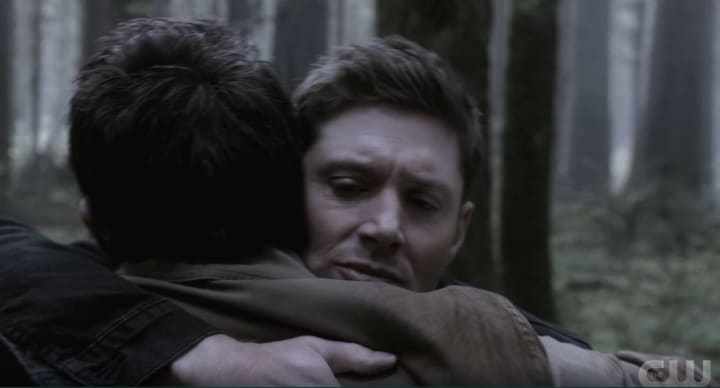 When Dean reunites with him, he throws himself at Castiel, the two men embracing.