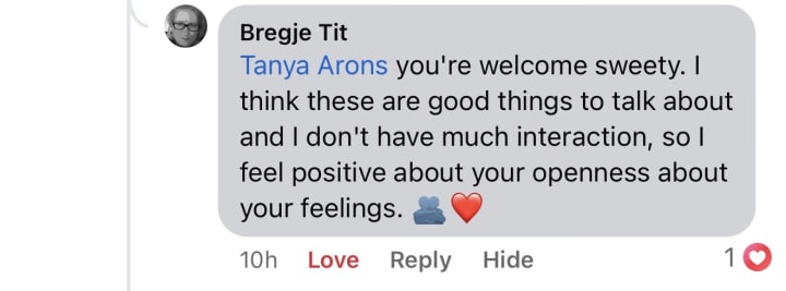 James (who has his own mental health issues) told me how the trees talk to each other. I told him that has just been documented scientifically that all of nature communicates.