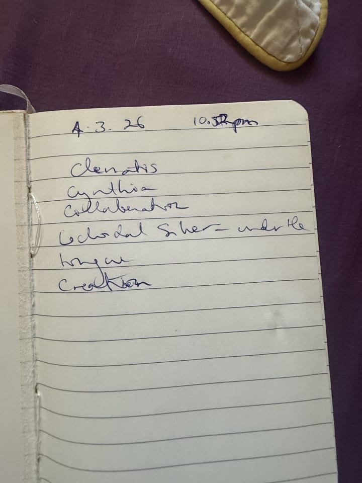 Last night I put on my cpap mask and prepared for sleep but I was gifted random words which were so loud, clear and insistent that I took notice and got up and wrote them down.