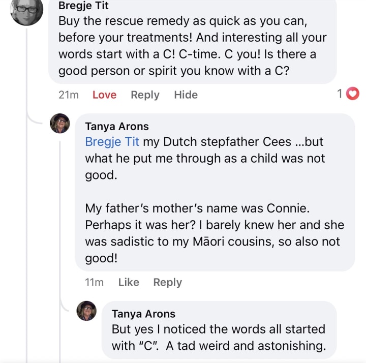 I am grateful to that spirit (who did not give me their name but just spoke these words to me like a Sergeant Major barking orders). Someone is trying to keep me alive. Very kind and noble.