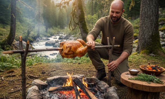 Preparing a Whole Chicken in Nature. AI-Generated.