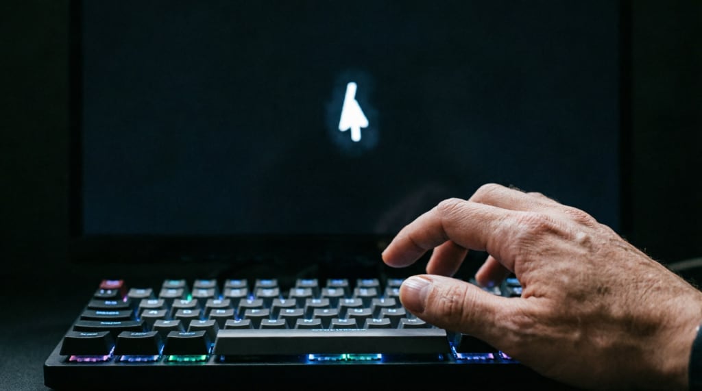Hand hovers over lit keyboard