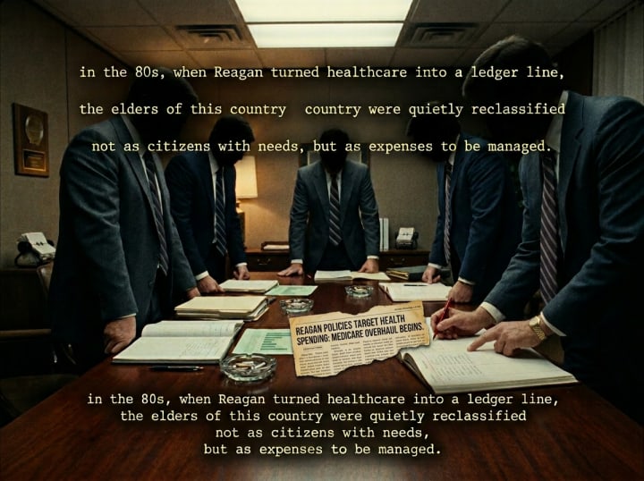"In 1983, they didn't just change the laws; they changed what it meant to be human. They reclassified the elders and the 'obsolete' as managed expenses—units to be monitored until they expired.