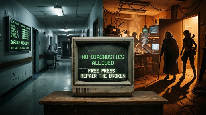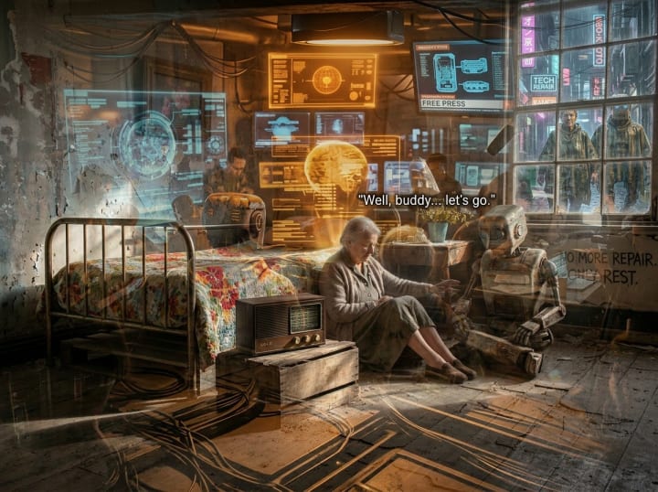 Welcome to Part Two: Discarded Souls. Watch as the Old Woman and Echo step out of the hospice shadows and into the amber glow of the Free Press. This isn't just a story about survival; it’s a blueprint for repair.