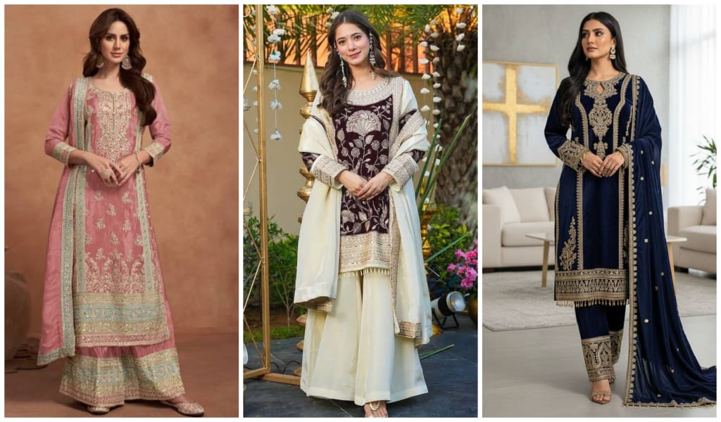 Present-day Eid salwar kameez styles incorporate subtle modern elements like structured sleeves, asymmetrical hems or layered designs. These details make for a current outfit while still paying homage to traditional aesthetics.