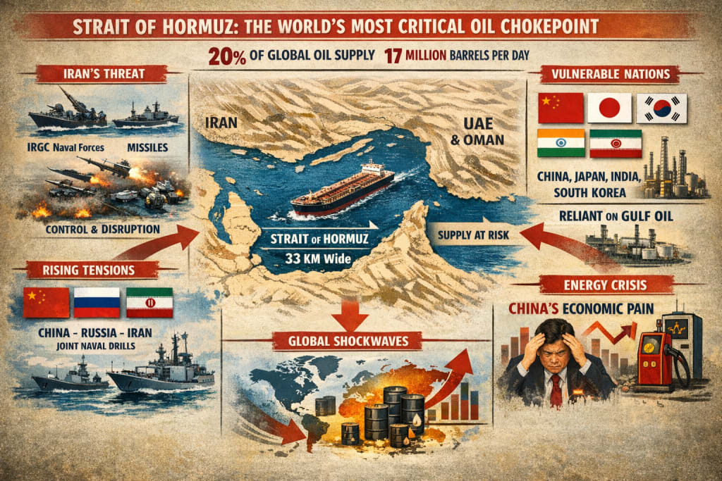 This war Stop being a medley story the moment the first oil tanker changed course in the Persian Gulf. What I mean is, Strait of Hormuz is the most important energy bottleneck on earth. Everybody knows it is the most important energy bottleneck on earth. And if it was the threat from Iran last time, this time Iran has partially done it. It is so narrow, IRGC has a lot of control over it. Just like in the Strait of Malacca, army/navy has control over it. Similarly, here the Iranians have control over it. And recently, China, Russia, and Iran have already conducted war games. So it is this narrow, 33 kilometers wide, you are hearing about it everywhere, everybody is talking about it. It is the width of a large city. So in this narrow passage, which holds 20% of the world's oil, one fifth of the world's oil and gas goes through, it is around 17 million barrels per day. There is no realistic alternative route except the Strait of Hormuz. If we close this passage, its consequences will not stop at any one border. Europe will pay, Japan will pay, India, South Korea, China, everybody pays the price. So a theory is floating around, which backs my argument that China is the target. It is that in Washington circles, there is a discussion going on, let's be honest, if this happens, what do we have to do? The hawkish people there say that this disruption should be allowed because it does not impact them as much as it impacts those countries, which I have just mentioned. So let's take this opportunity that the slowdown of China's energy supply can be slowed down. Trap Beijing in such an expensive moment as long as this congestion remains in the Strait of Hormuz, it remains closed, partially or completely. Iran keeps Beijing hit very badly from an energy security point of view. So the containment policy of China that is already going on is an added bonus. So imagine, on one hand, you are doing everything with technology and trade, imposing tariffs, treating them in the South China Sea, imagine all this. And from the other side, almost 90% of the oil and gas supplies go to China. If it is blocked for a few days, how badly it will hit China. So imagine, while the world is suffering, they are only having strategic designs in their minds.